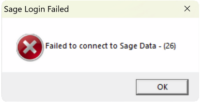 If you’re not sure if you had installed the previous 32bit SDO or not you can check in the Windows>Control Panel>Programs and Features area but you are also likely to see an Error message pop up if you try to connect and have the incorrect SDO version installed, the message is “Sage Login Failed – Failed to connect to Sage Data – (26)”.
